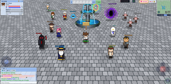 - Map: Players navigate a pseudo-3D grid-based map environment, exploring different zones, towns, and monster-filled fields using point-and-click or touch controls.